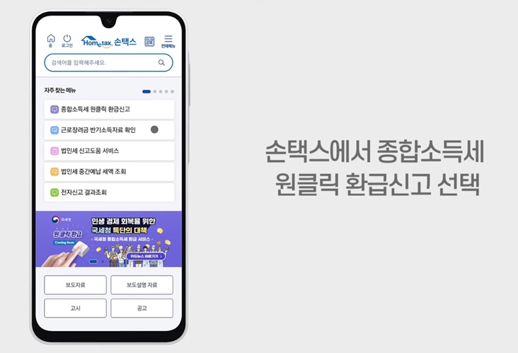 국세청이 이를 미리 확인하고 알려주며, 사용자가 원클릭으로 환급 신청을 할 수 있도록 만든 간편 서비스입니다.