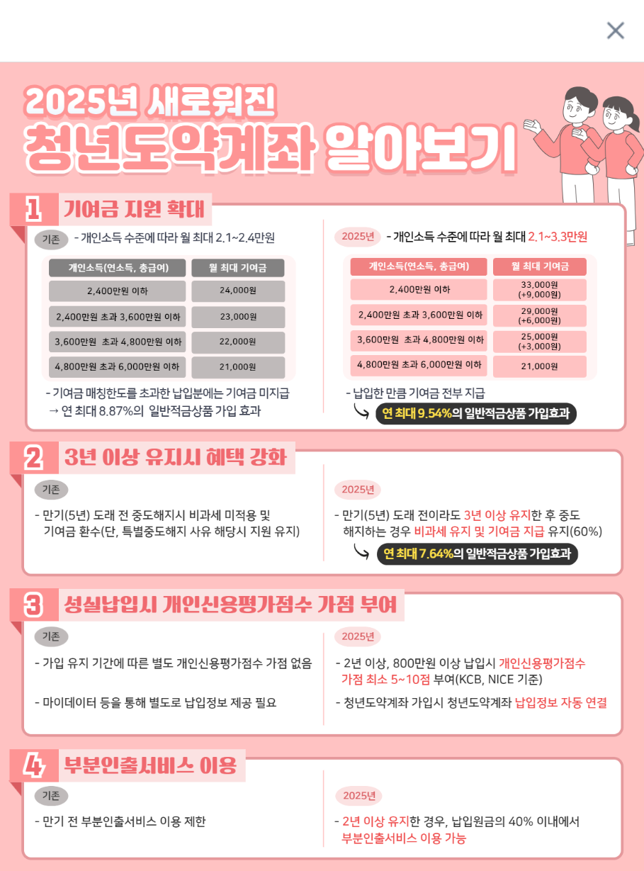 ✔ 청년도약계좌 신청조건은 2025년부터 더욱 완화되고 실질적인 혜택이 강화되었습니다.