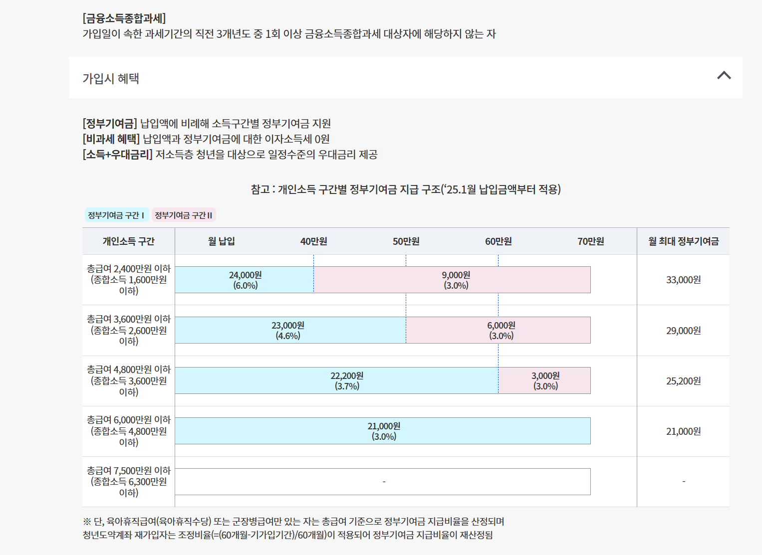 2025년부터는 소득 구간에 따른 정부 기여금(매칭금) 지원 한도가 상향되었습니다.